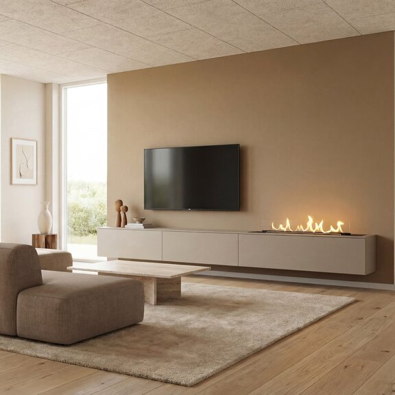 Le brûleur au bioéthanol est disponible en trois tailles standard de 520 à 1120 mm et s'intègre de manière flexible dans des concepts d'habitat individuels.