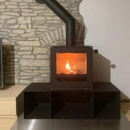 Le poêle est disponible avec une porte de foyer en acier ou en verre plein, divers socles ou pieds design ainsi que différentes poignées de porte. Avec les bancs optionnels, vous pouvez faire de ce modèle votre propre meuble de foyer.